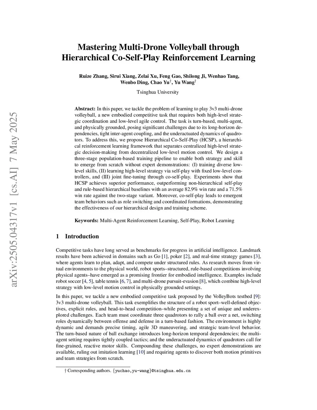 Mastering Multi-Drone Volleyball through Hierarchical Co-Self-Play Reinforcement Learning