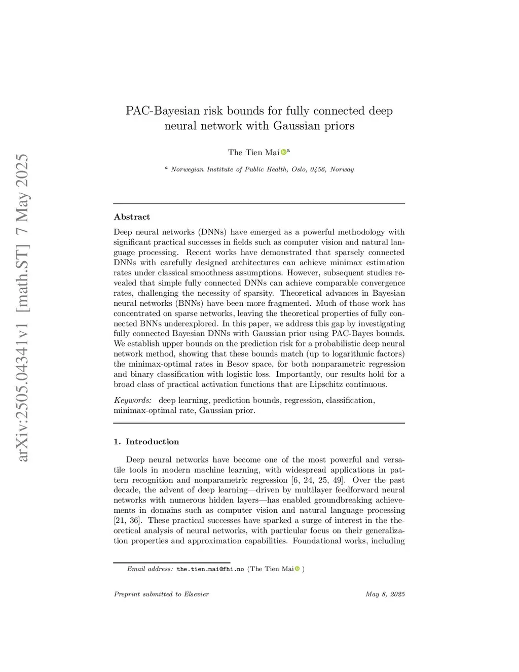 PAC-Bayesian risk bounds for fully connected deep neural network with Gaussian priors
