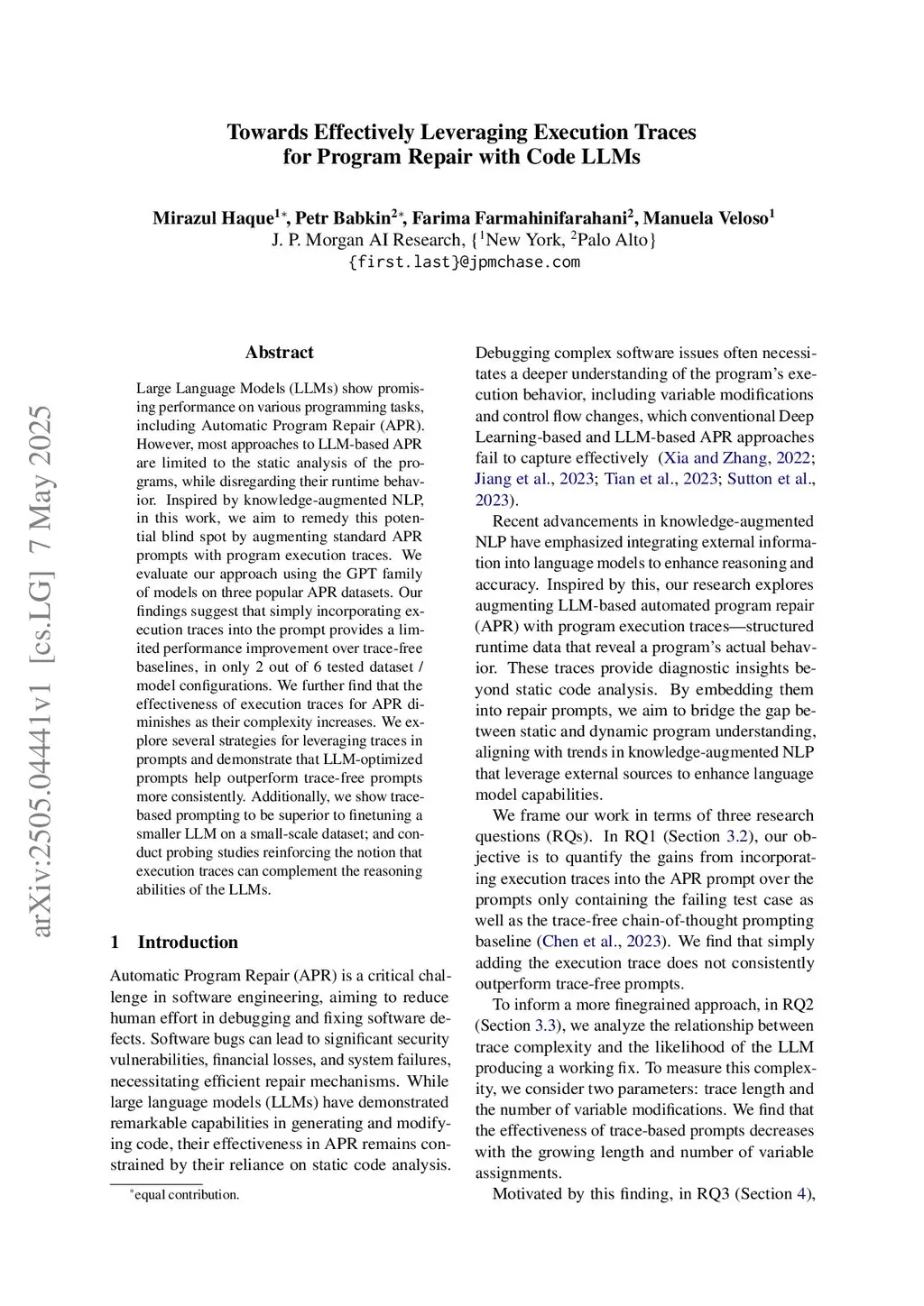Large Language Models (LLMs) show promising performance on various programming tasks, including Automatic Program Repair (APR). However, most approaches to LLM-based APR are limited to the static analysis of the programs, while disregarding their runtime behavior. Inspired by knowledge-augmented NLP, in this work, we aim to remedy this potential blind spot by augmenting standard APR prompts with program execution traces. We evaluate our approach using the GPT family of models on three popular APR datasets. Our findings suggest that simply incorporating execution traces into the prompt provides a limited performance improvement over trace-free baselines, in only 2 out of 6 tested dataset / model configurations. We further find that the effectiveness of execution traces for APR diminishes as their complexity increases. We explore several strategies for leveraging traces in prompts and demonstrate that LLM-optimized prompts help outperform trace-free prompts more consistently. Additionally, we show trace-based prompting to be superior to finetuning a smaller LLM on a small-scale dataset; and conduct probing studies reinforcing the notion that execution traces can complement the reasoning abilities of the LLMs.