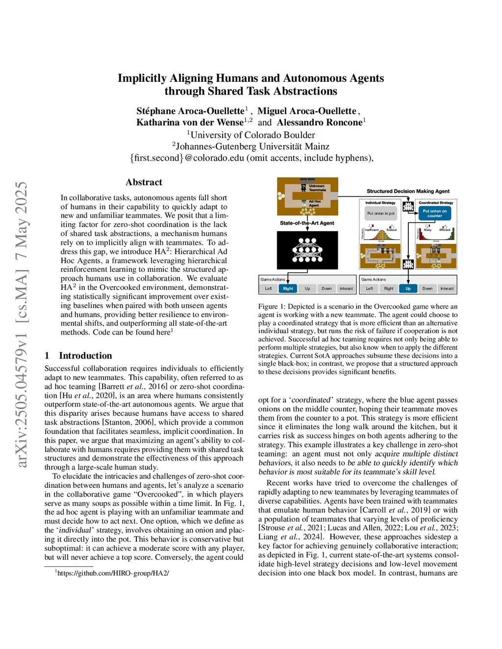 Implicitly Aligning Humans and Autonomous Agents through Shared Task Abstractions