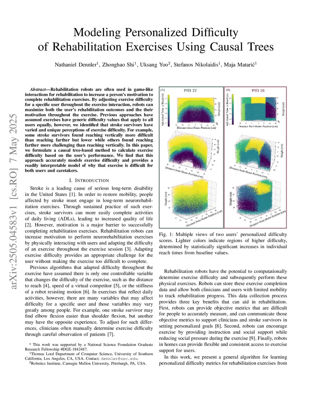 Modeling Personalized Difficulty of Rehabilitation Exercises Using Causal Trees