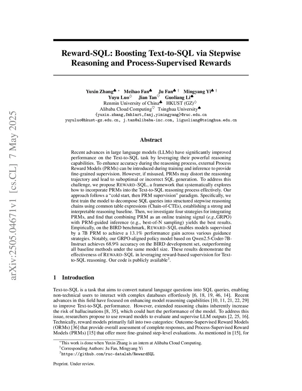 Reward-SQL: Boosting Text-to-SQL via Stepwise Reasoning and Process-Supervised Rewards