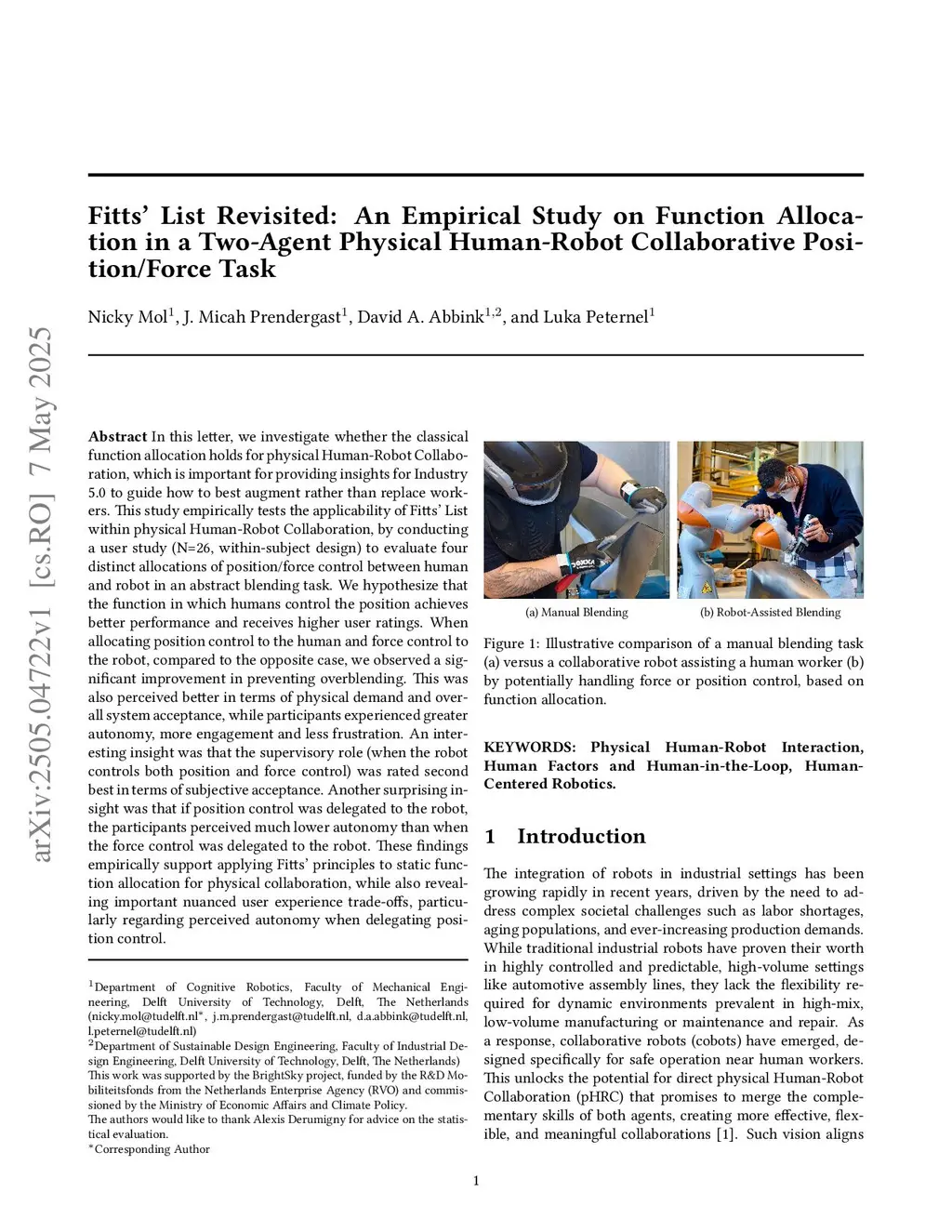 Fitts' List Revisited: An Empirical Study on Function Allocation in a Two-Agent Physical Human-Robot Collaborative Position/Force Task