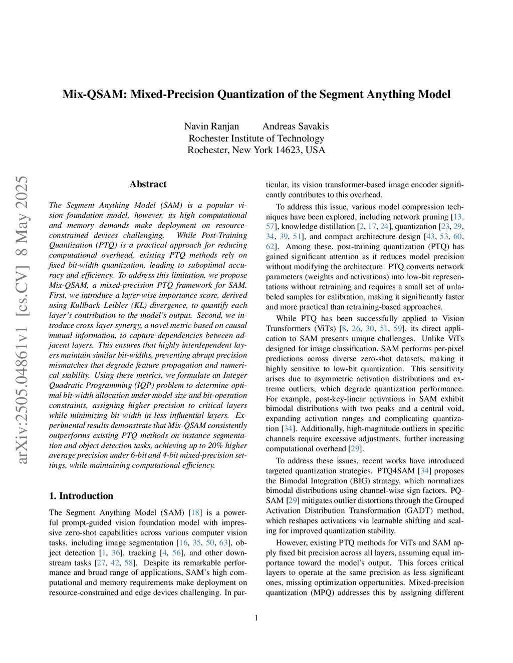 Mix-QSAM: Mixed-Precision Quantization of the Segment Anything Model