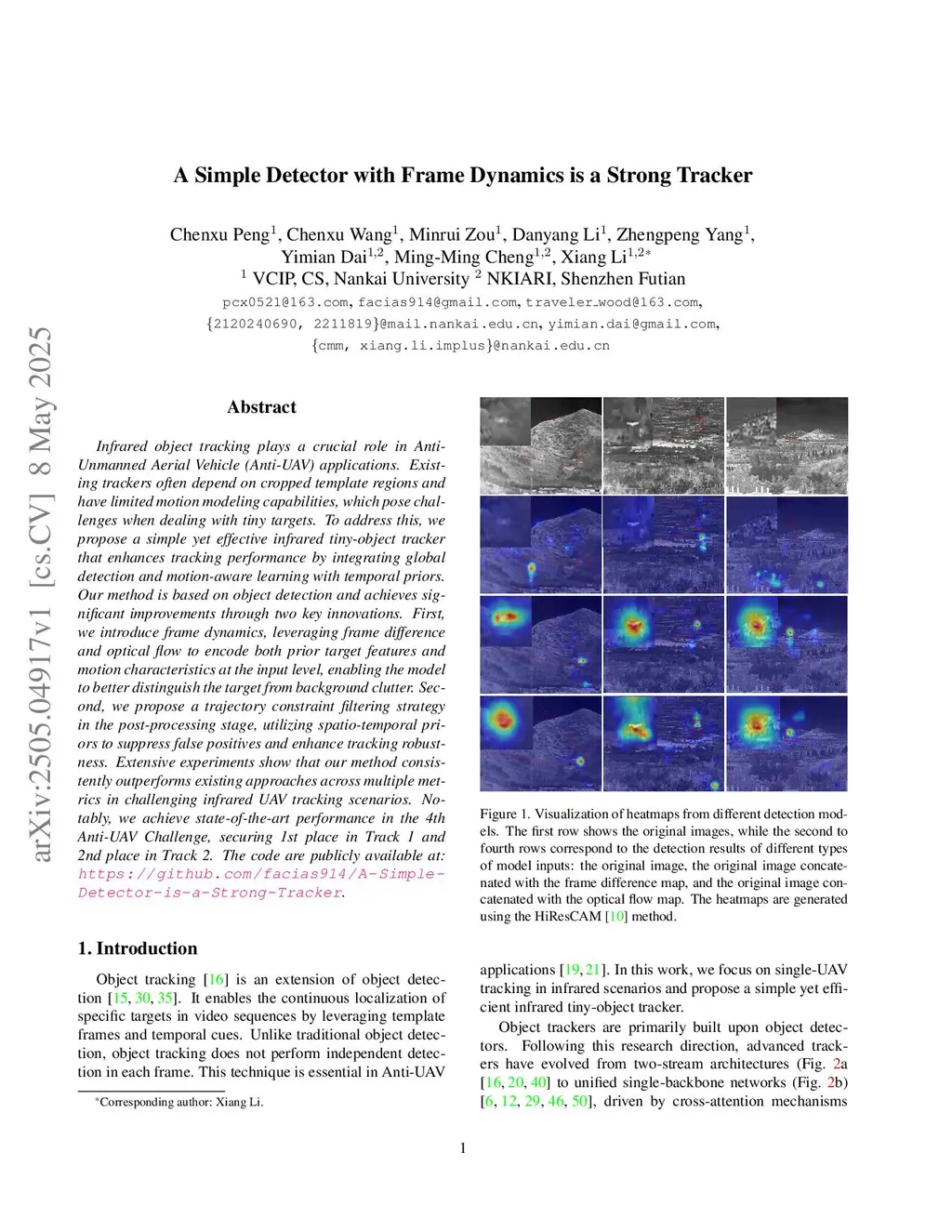 Infrared object tracking plays a crucial role in Anti-Unmanned Aerial Vehicle (Anti-UAV) applications. Existing trackers often depend on cropped template regions and have limited motion modeling capabilities, which pose challenges when dealing with tiny targets. To address this, we propose a simple yet effective infrared tiny-object tracker that enhances tracking performance by integrating global detection and motion-aware learning with temporal priors. Our method is based on object detection and achieves significant improvements through two key innovations. First, we introduce frame dynamics, leveraging frame difference and optical flow to encode both prior target features and motion characteristics at the input level, enabling the model to better distinguish the target from background clutter. Second, we propose a trajectory constraint filtering strategy in the post-processing stage, utilizing spatio-temporal priors to suppress false positives and enhance tracking robustness. Extensive experiments show that our method consistently outperforms existing approaches across multiple metrics in challenging infrared UAV tracking scenarios. Notably, we achieve state-of-the-art performance in the 4th Anti-UAV Challenge, securing 1st place in Track 1 and 2nd place in Track 2.