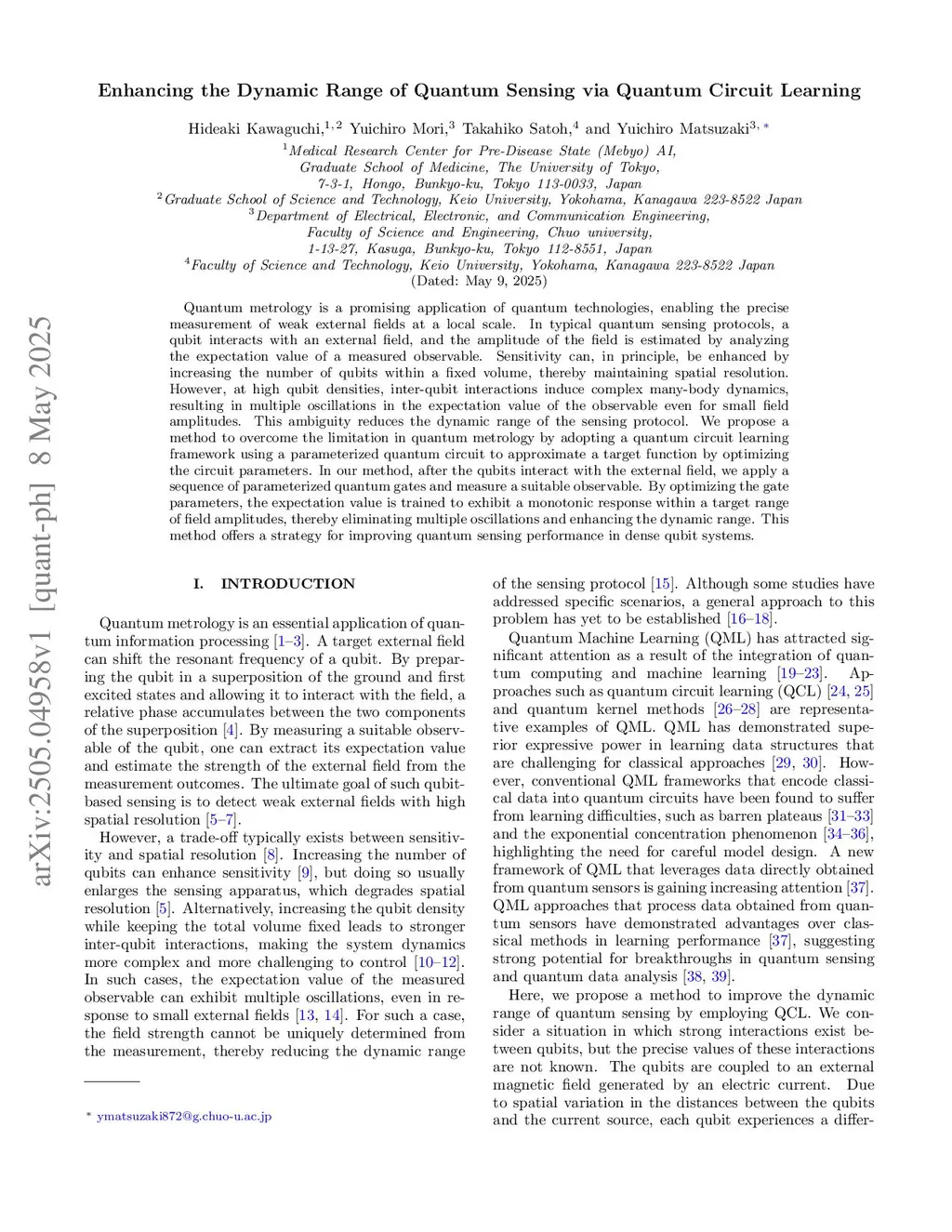 Quantum metrology is a promising application of quantum technologies, enabling the precise measurement of weak external fields at a local scale. In typical quantum sensing protocols, a qubit interacts with an external field, and the amplitude of the field is estimated by analyzing the expectation value of a measured observable. Sensitivity can, in principle, be enhanced by increasing the number of qubits within a fixed volume, thereby maintaining spatial resolution. However, at high qubit densities, inter-qubit interactions induce complex many-body dynamics, resulting in multiple oscillations in the expectation value of the observable even for small field amplitudes. This ambiguity reduces the dynamic range of the sensing protocol. We propose a method to overcome the limitation in quantum metrology by adopting a quantum circuit learning framework using a parameterized quantum circuit to approximate a target function by optimizing the circuit parameters. In our method, after the qubits interact with the external field, we apply a sequence of parameterized quantum gates and measure a suitable observable. By optimizing the gate parameters, the expectation value is trained to exhibit a monotonic response within a target range of field amplitudes, thereby eliminating multiple oscillations and enhancing the dynamic range. This method offers a strategy for improving quantum sensing performance in dense qubit systems.