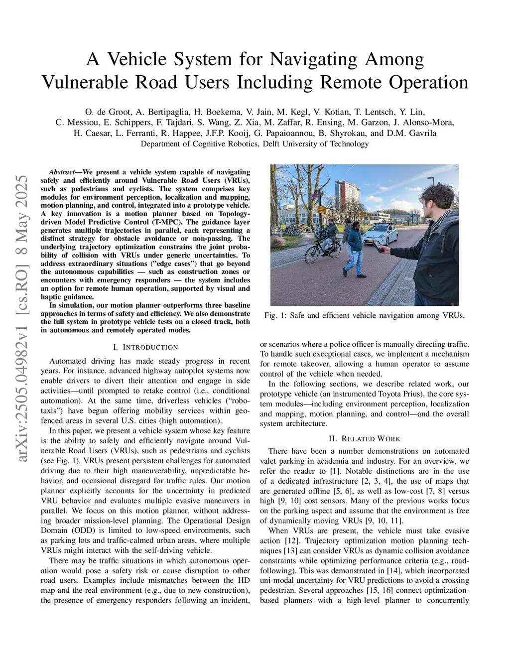 A Vehicle System for Navigating Among Vulnerable Road Users Including Remote Operation