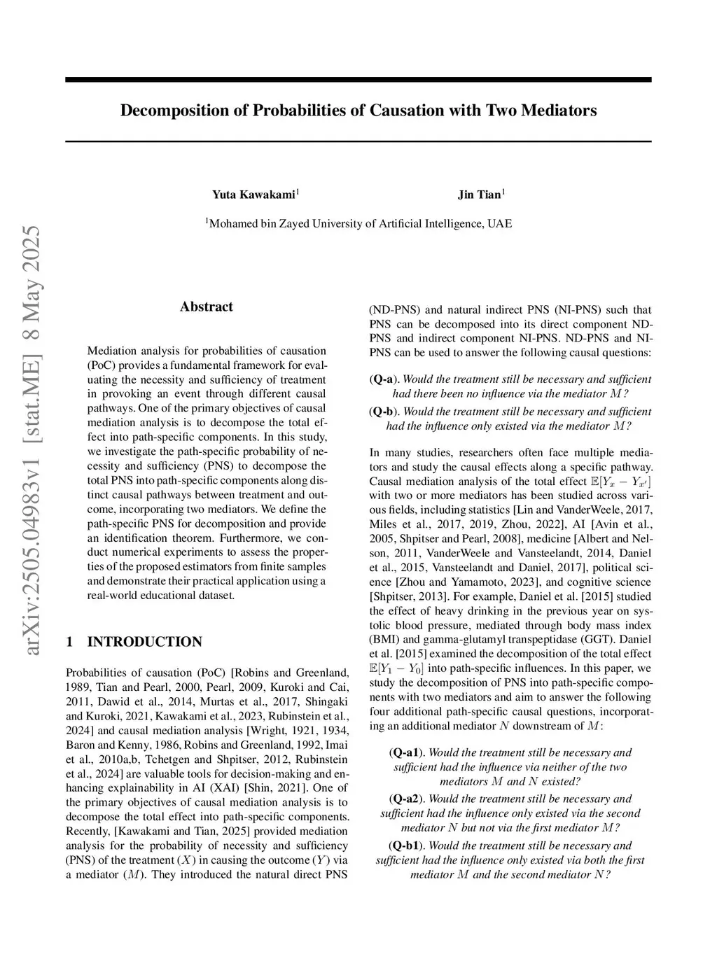 Decomposition of Probabilities of Causation with Two Mediators
