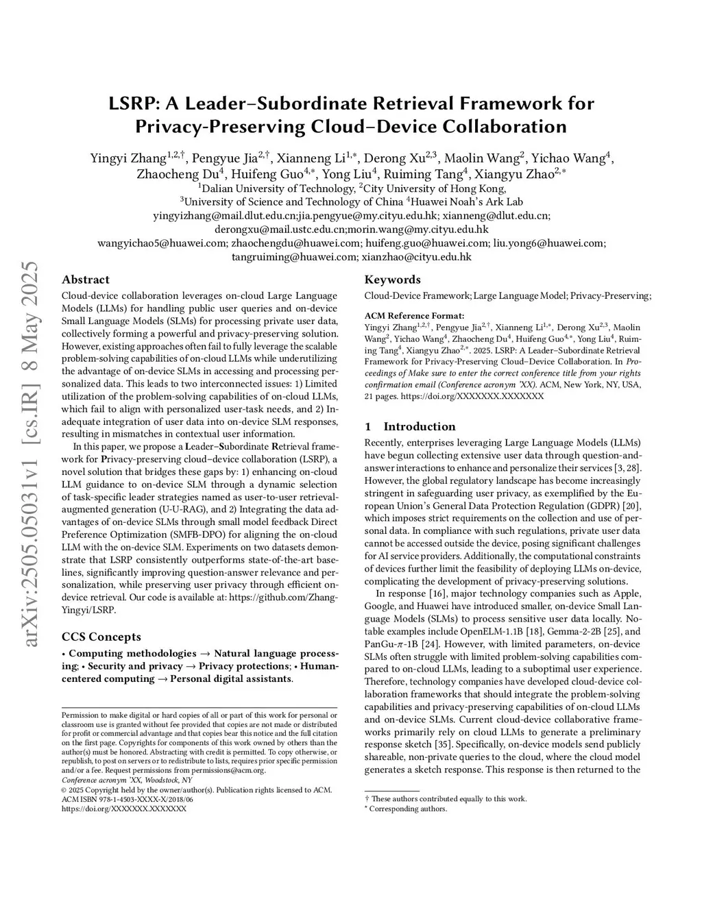 LSRP: A Leader-Subordinate Retrieval Framework for Privacy-Preserving Cloud-Device Collaboration