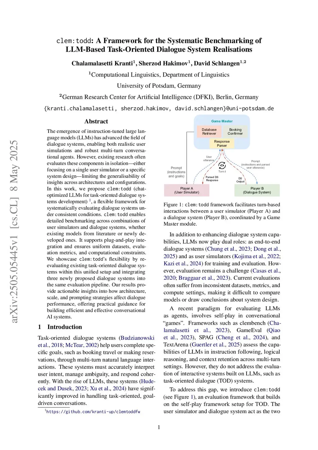 clem:todd: A Framework for the Systematic Benchmarking of LLM-Based Task-Oriented Dialogue System Realisations
