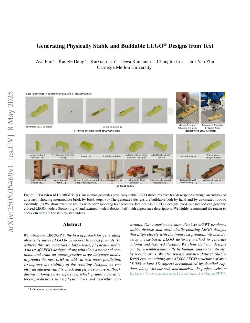 We introduce BrickGPT, the first approach for generating physically stable interconnecting brick assembly models from text prompts. To achieve this, we construct a large-scale, physically stable dataset of brick structures, along with their associated captions, and train an autoregressive large language model to predict the next brick to add via next-token prediction. To improve the stability of the resulting designs, we employ an efficient validity check and physics-aware rollback during autoregressive inference, which prunes infeasible token predictions using physics laws and assembly constraints. Our experiments show that BrickGPT produces stable, diverse, and aesthetically pleasing brick structures that align closely with the input text prompts. We also develop a text-based brick texturing method to generate colored and textured designs. We show that our designs can be assembled manually by humans and automatically by robotic arms. We release our new dataset, StableText2Brick, containing over 47,000 brick structures of over 28,000 unique 3D objects accompanied by detailed captions, along with our code and models at the project website:this https URL.