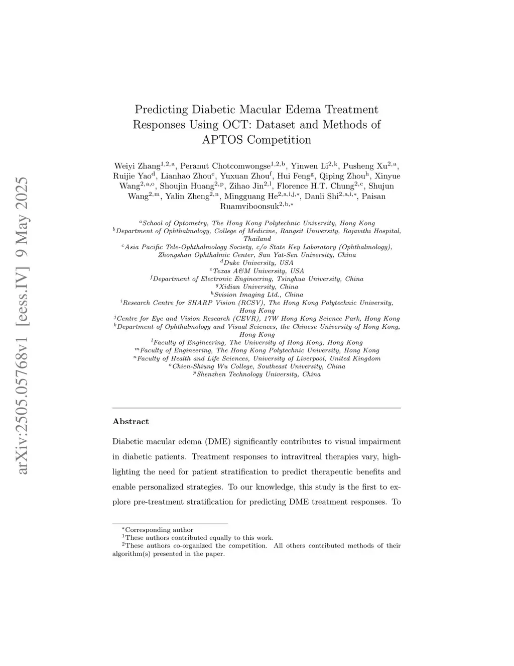 Predicting Diabetic Macular Edema Treatment Responses Using OCT: Dataset and Methods of APTOS Competition