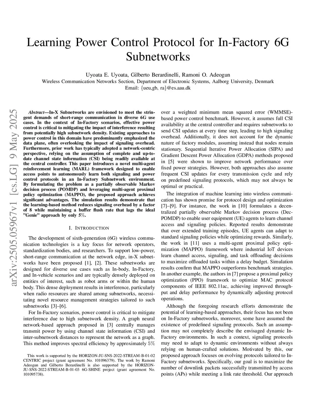 Learning Power Control Protocol for In-Factory 6G Subnetworks