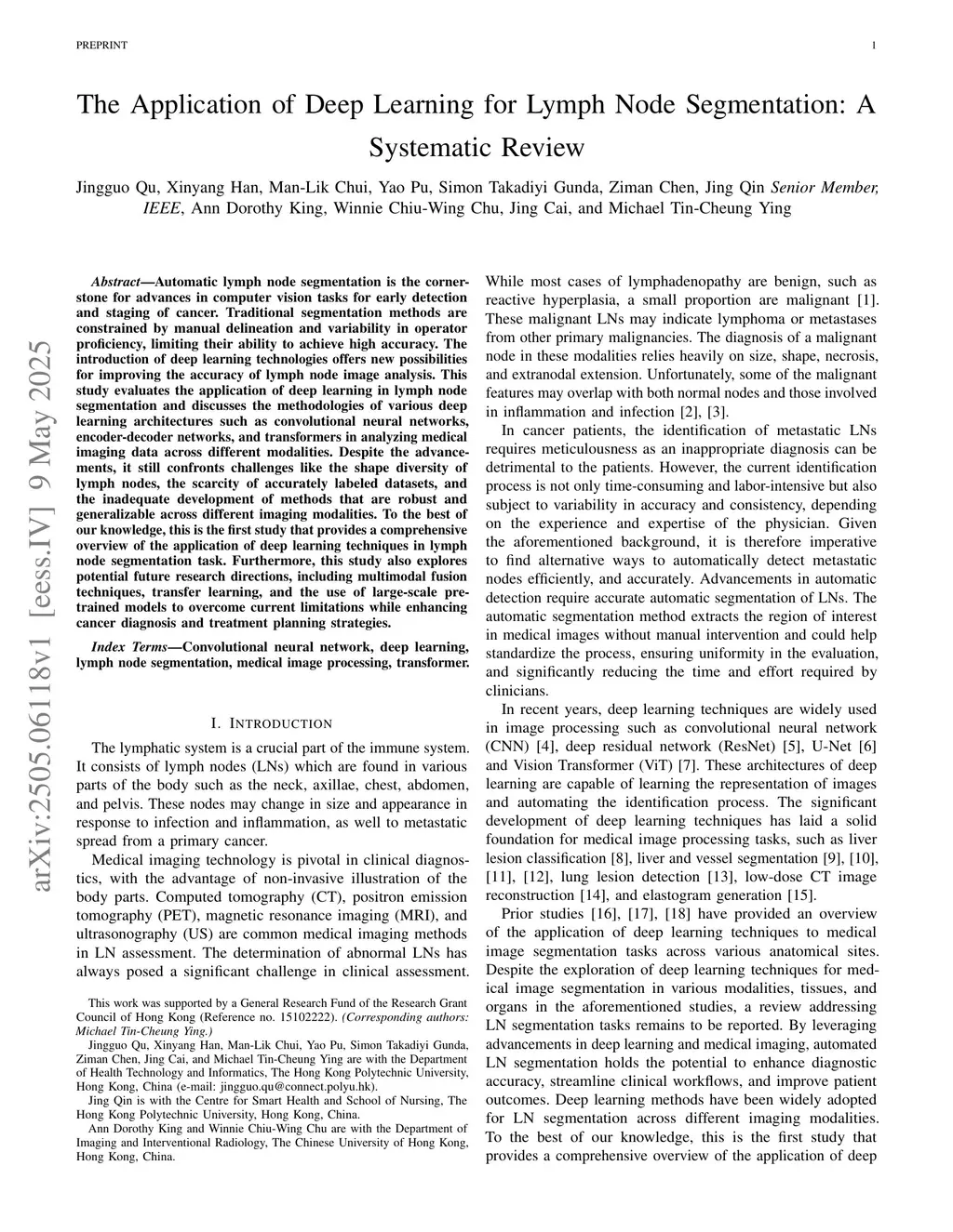 The Application of Deep Learning for Lymph Node Segmentation: A Systematic Review