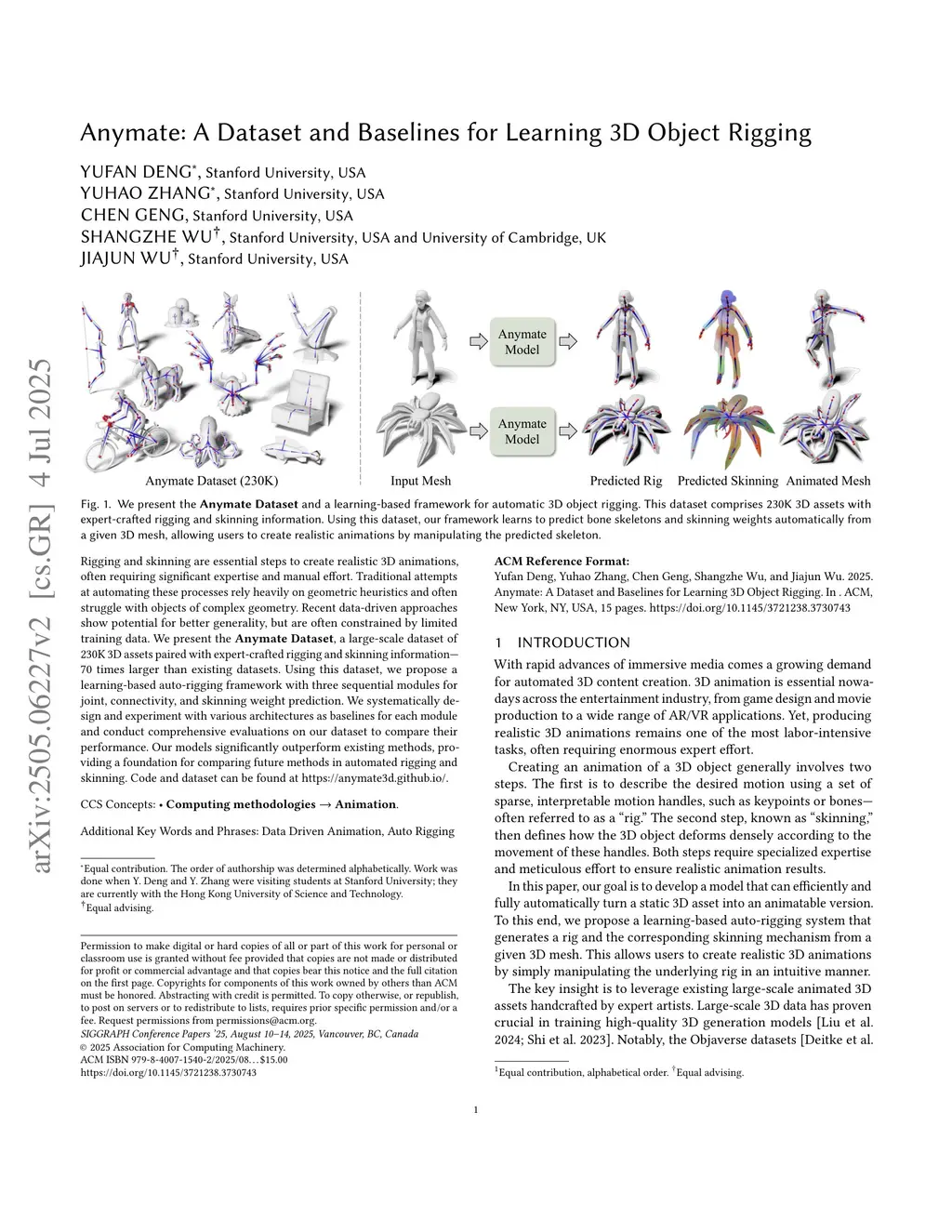 Anymate: A Dataset and Baselines for Learning 3D Object Rigging
