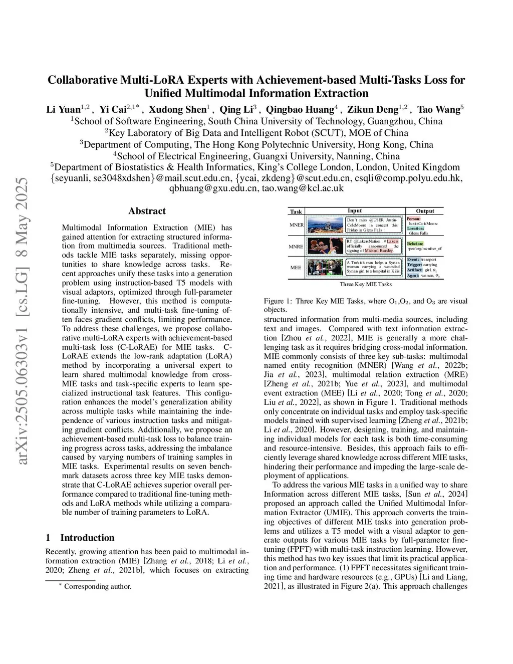 Collaborative Multi-LoRA Experts with Achievement-based Multi-Tasks Loss for Unified Multimodal Information Extraction