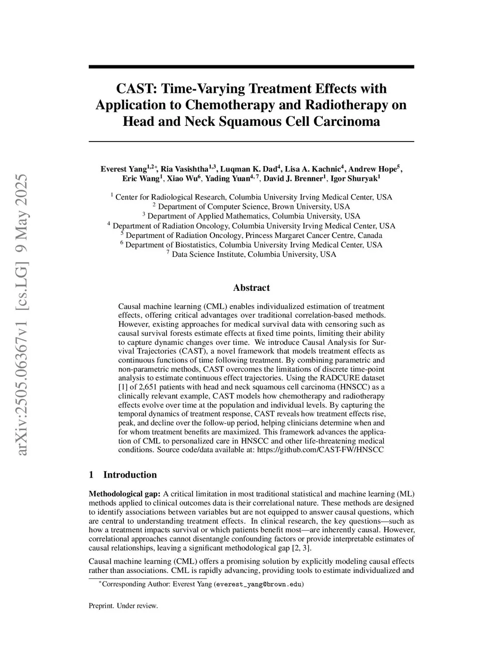 CAST: Time-Varying Treatment Effects with Application to Chemotherapy and Radiotherapy on Head and Neck Squamous Cell Carcinoma