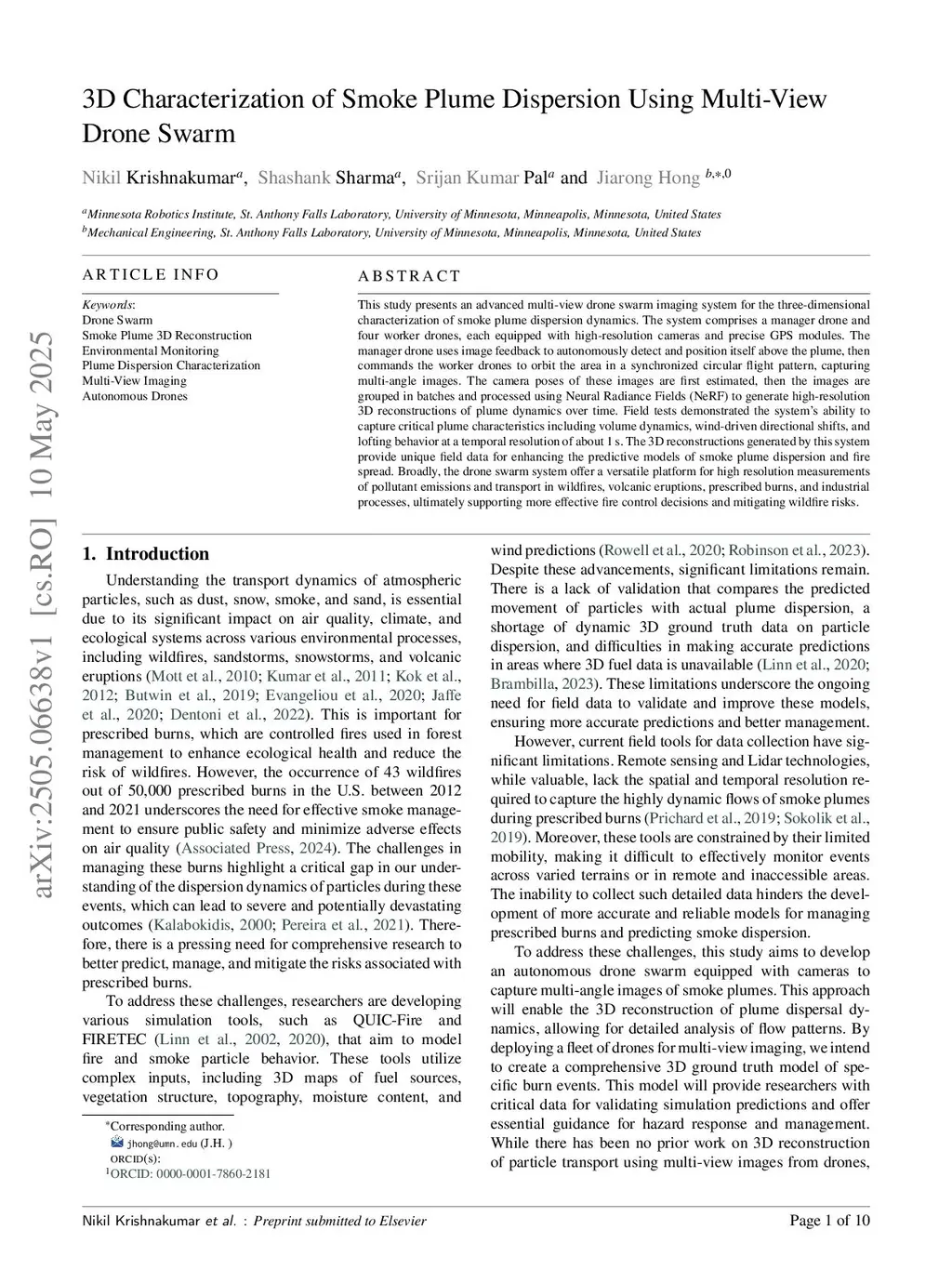 3D Characterization of Smoke Plume Dispersion Using Multi-View Drone Swarm