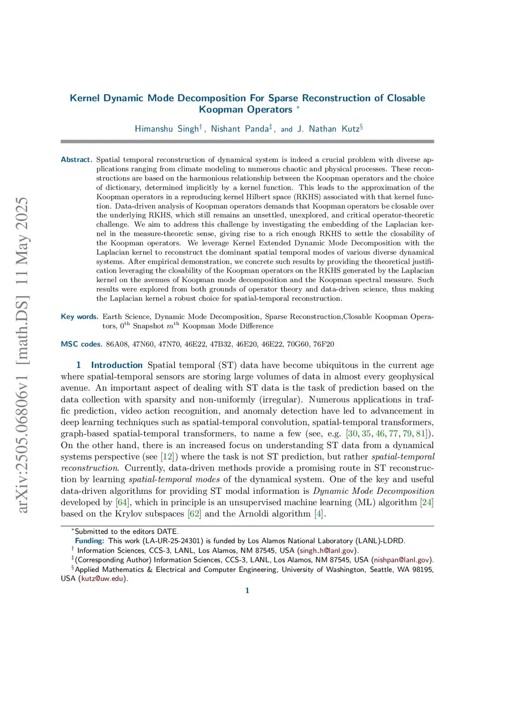 Spatial temporal reconstruction of dynamical system is indeed a crucial problem with diverse applications ranging from climate modeling to numerous chaotic and physical processes. These reconstructions are based on the harmonious relationship between the Koopman operators and the choice of dictionary, determined implicitly by a kernel function. This leads to the approximation of the Koopman operators in a reproducing kernel Hilbert space (RKHS) associated with that kernel function. Data-driven analysis of Koopman operators demands that Koopman operators be closable over the underlying RKHS, which still remains an unsettled, unexplored, and critical operator-theoretic challenge. We aim to address this challenge by investigating the embedding of the Laplacian kernel in the measure-theoretic sense, giving rise to a rich enough RKHS to settle the closability of the Koopman operators. We leverage Kernel Extended Dynamic Mode Decomposition with the Laplacian kernel to reconstruct the dominant spatial temporal modes of various diverse dynamical systems. After empirical demonstration, we concrete such results by providing the theoretical justification leveraging the closability of the Koopman operators on the RKHS generated by the Laplacian kernel on the avenues of Koopman mode decomposition and the Koopman spectral measure. Such results were explored from both grounds of operator theory and data-driven science, thus making the Laplacian kernel a robust choice for spatial-temporal reconstruction.