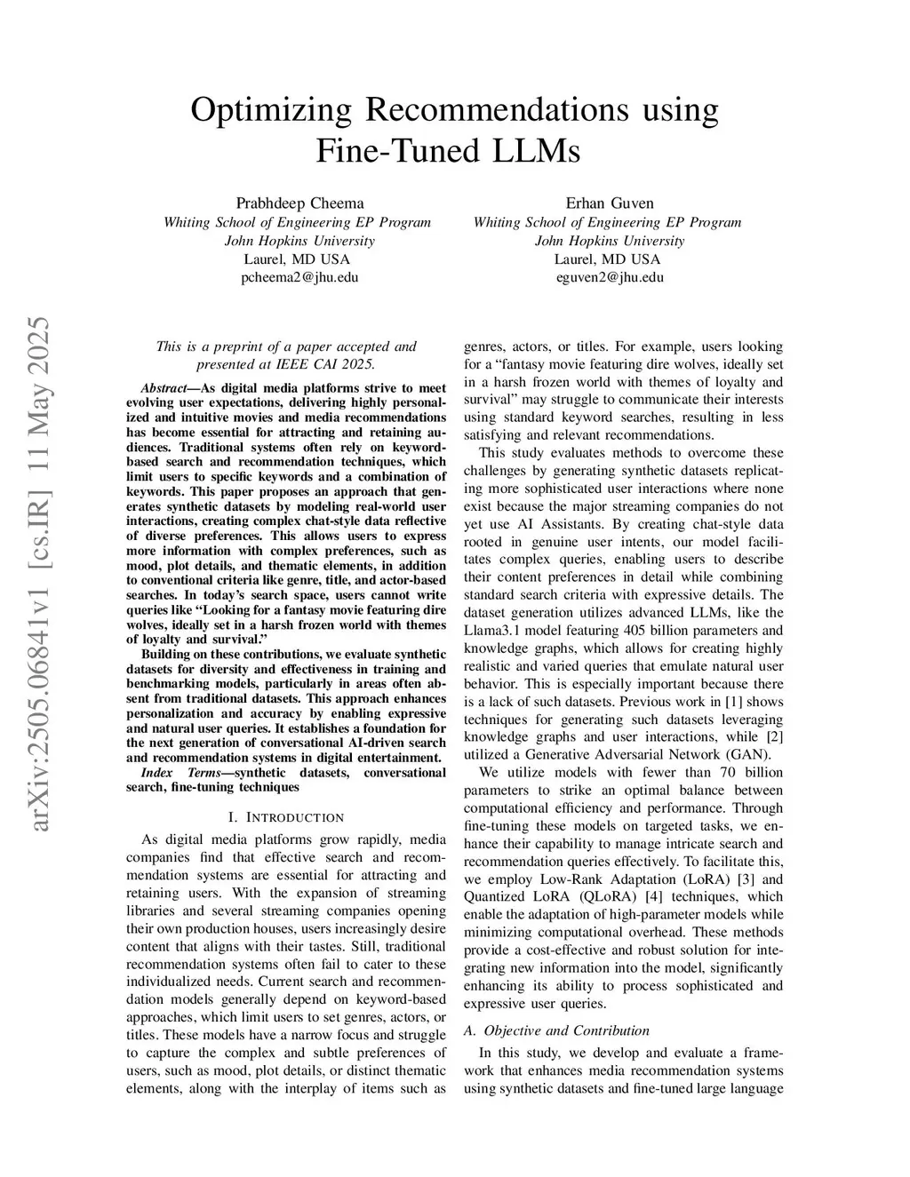 Optimizing Recommendations using Fine-Tuned LLMs