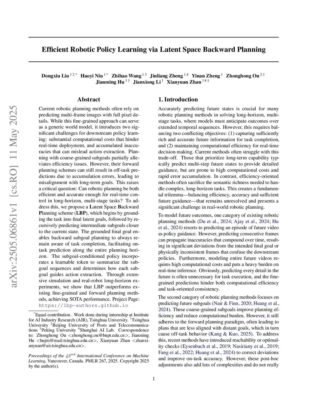 Efficient Robotic Policy Learning via Latent Space Backward Planning