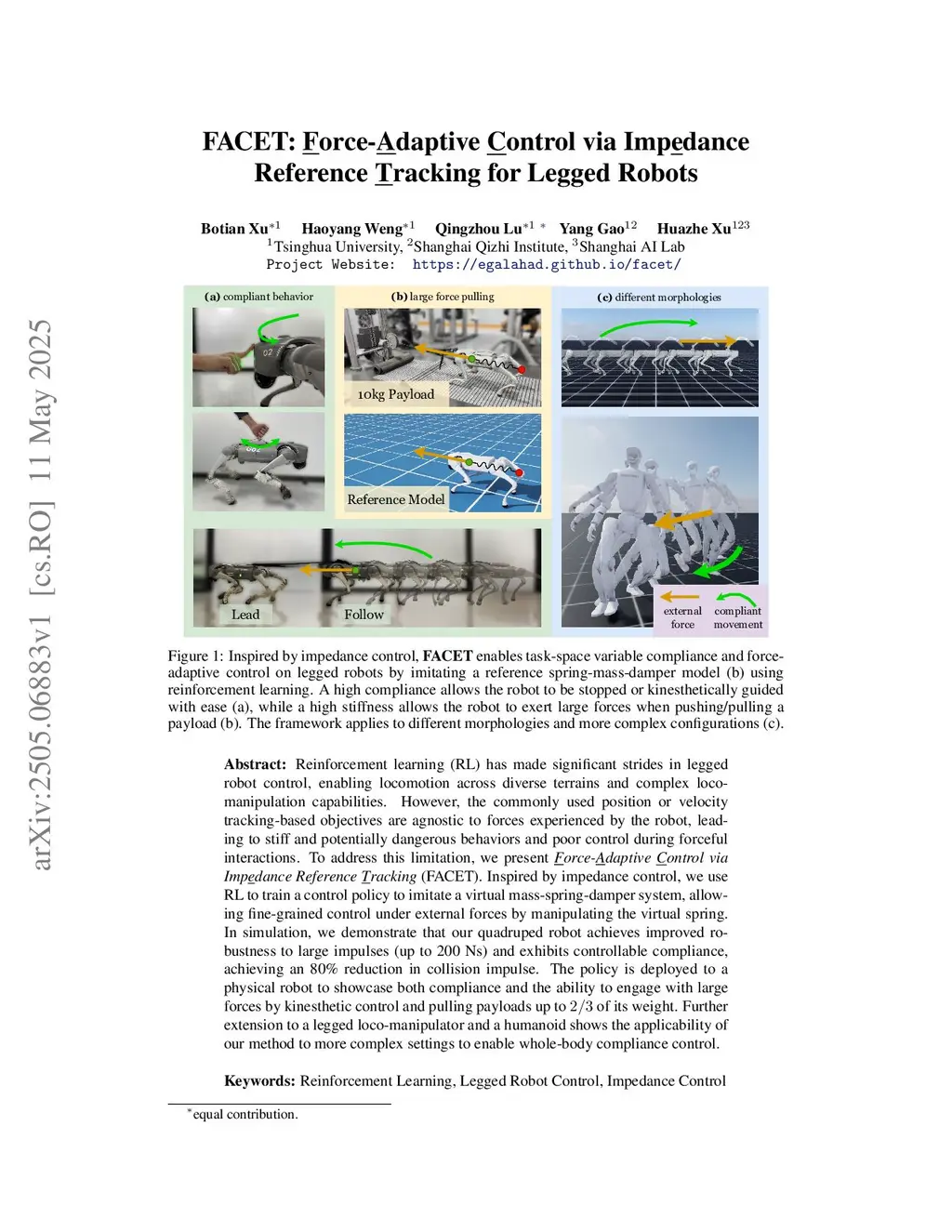 FACET: Force-Adaptive Control via Impedance Reference Tracking for Legged Robots
