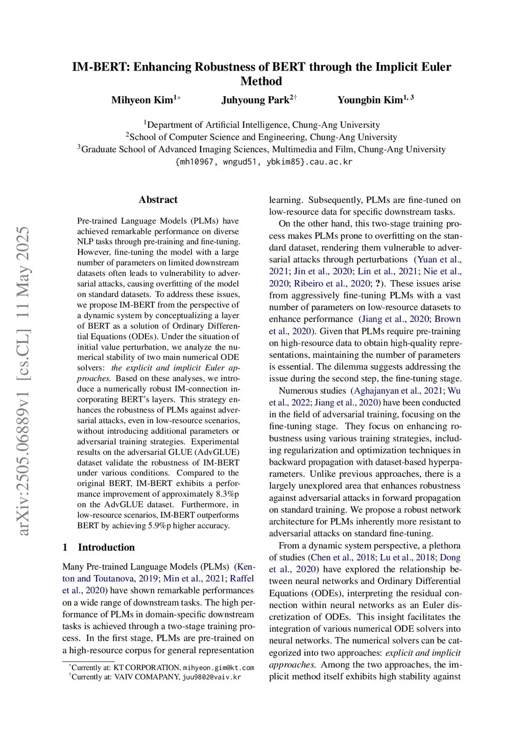 IM-BERT: Enhancing Robustness of BERT through the Implicit Euler Method