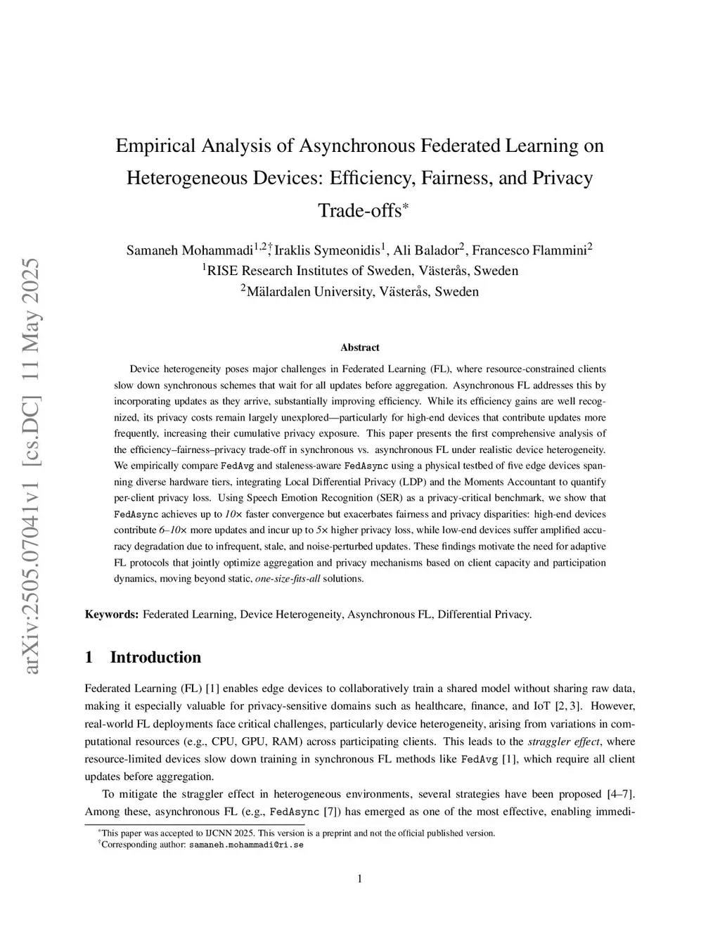 Empirical Analysis of Asynchronous Federated Learning on Heterogeneous Devices: Efficiency, Fairness, and Privacy Trade-offs