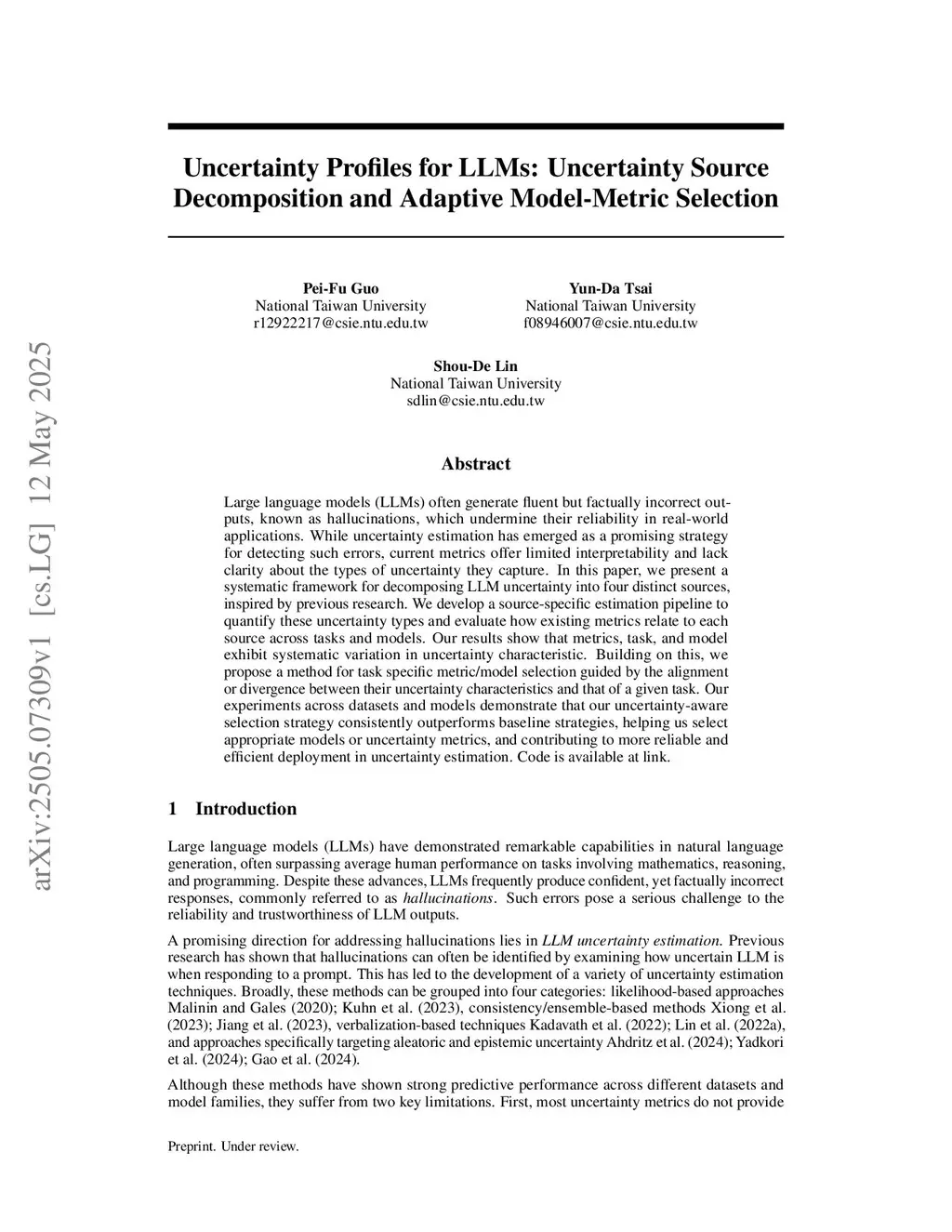 Large language models (LLMs) often generate fluent but factually incorrect outputs, known as hallucinations, which undermine their reliability in real-world applications. While uncertainty estimation has emerged as a promising strategy for detecting such errors, current metrics offer limited interpretability and lack clarity about the types of uncertainty they capture. In this paper, we present a systematic framework for decomposing LLM uncertainty into four distinct sources, inspired by previous research. We develop a source-specific estimation pipeline to quantify these uncertainty types and evaluate how existing metrics relate to each source across tasks and models. Our results show that metrics, task, and model exhibit systematic variation in uncertainty characteristic. Building on this, we propose a method for task specific metric/model selection guided by the alignment or divergence between their uncertainty characteristics and that of a given task. Our experiments across datasets and models demonstrate that our uncertainty-aware selection strategy consistently outperforms baseline strategies, helping us select appropriate models or uncertainty metrics, and contributing to more reliable and efficient deployment in uncertainty estimation.