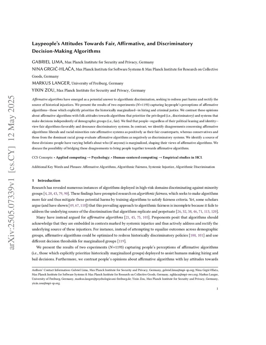 Laypeople's Attitudes Towards Fair, Affirmative, and Discriminatory Decision-Making Algorithms