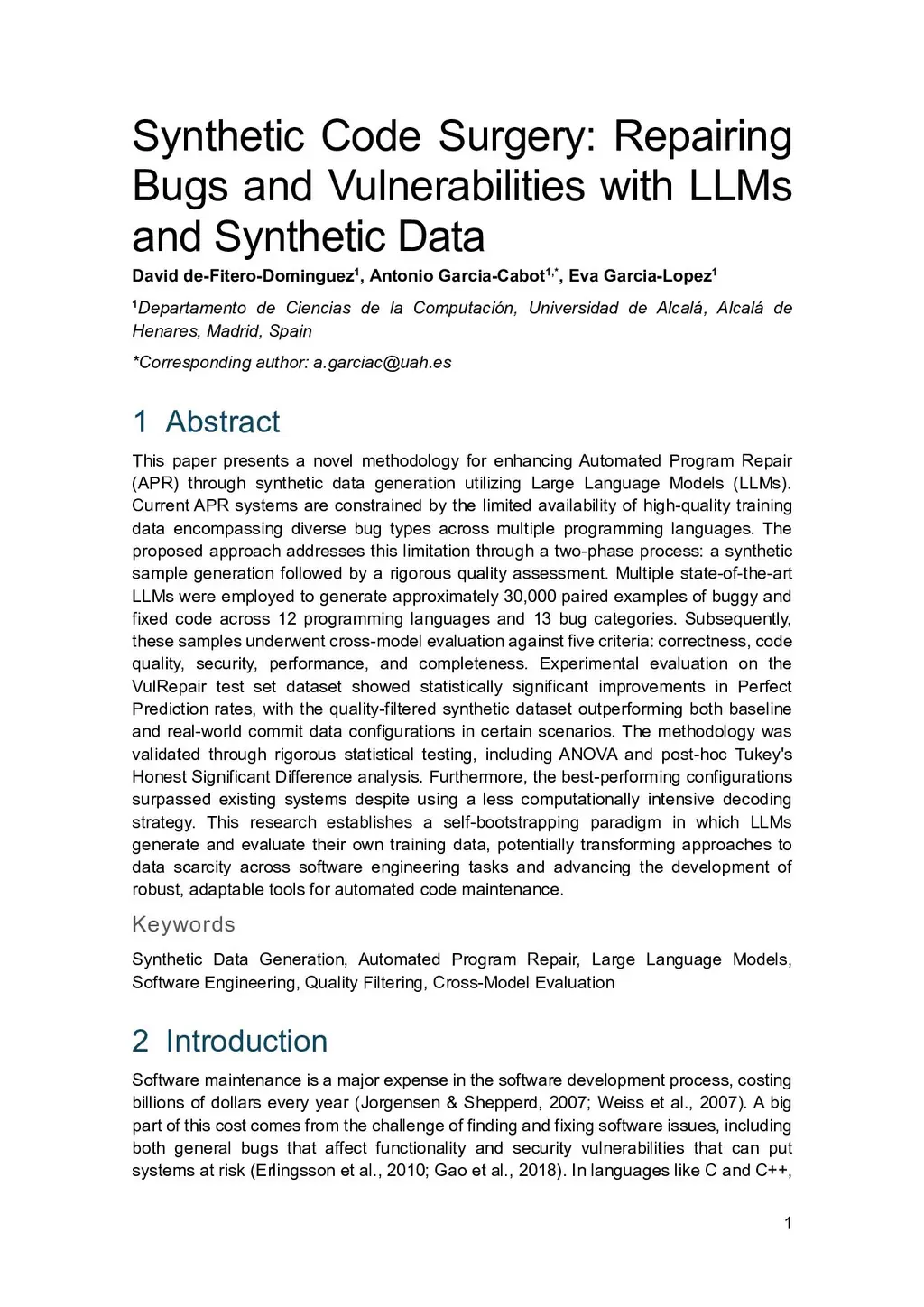 This paper presents a novel methodology for enhancing Automated Program Repair (APR) through synthetic data generation utilizing Large Language Models (LLMs). Current APR systems are constrained by the limited availability of high-quality training data encompassing diverse bug types across multiple programming languages. The proposed approach addresses this limitation through a two-phase process: a synthetic sample generation followed by a rigorous quality assessment. Multiple state-of-the-art LLMs were employed to generate approximately 30,000 paired examples of buggy and fixed code across 12 programming languages and 13 bug categories. Subsequently, these samples underwent cross-model evaluation against five criteria: correctness, code quality, security, performance, and completeness. Experimental evaluation on the VulRepair test set dataset showed statistically significant improvements in Perfect Prediction rates, with the quality-filtered synthetic dataset outperforming both baseline and real-world commit data configurations in certain scenarios. The methodology was validated through rigorous statistical testing, including ANOVA and post-hoc Tukey's Honest Significant Difference analysis. Furthermore, the best-performing configurations surpassed existing systems despite using a less computationally intensive decoding strategy. This research establishes a self-bootstrapping paradigm in which LLMs generate and evaluate their own training data, potentially transforming approaches to data scarcity across software engineering tasks and advancing the development of robust, adaptable tools for automated code maintenance.