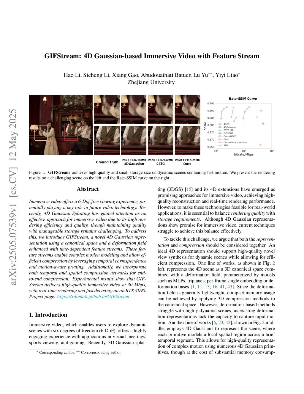 GIFStream: 4D Gaussian-based Immersive Video with Feature Stream