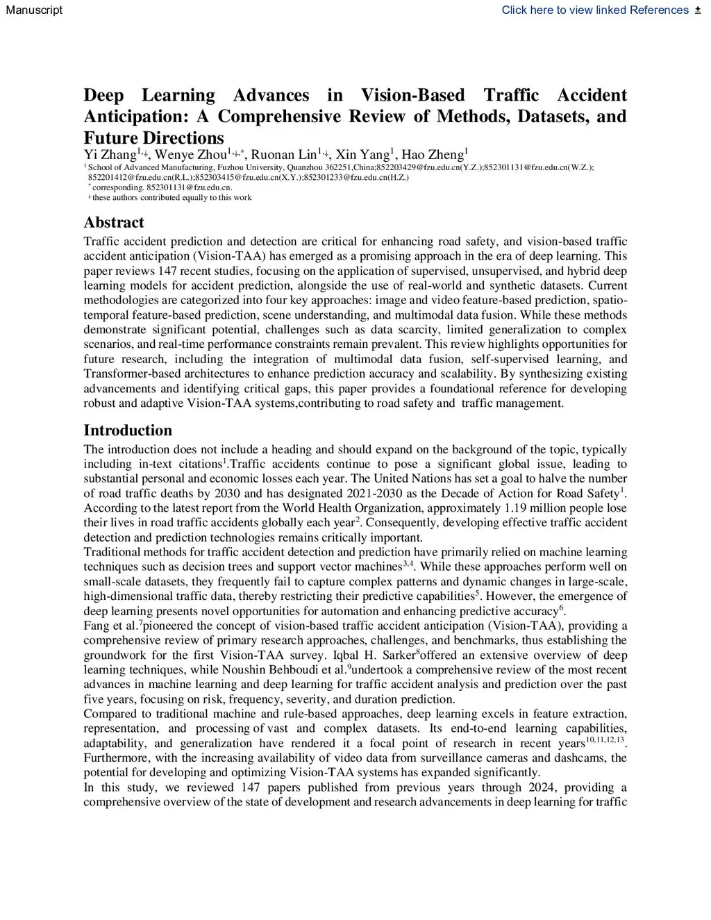 Deep Learning Advances in Vision-Based Traffic Accident Anticipation: A Comprehensive Review of Methods, Datasets, and Future Directions