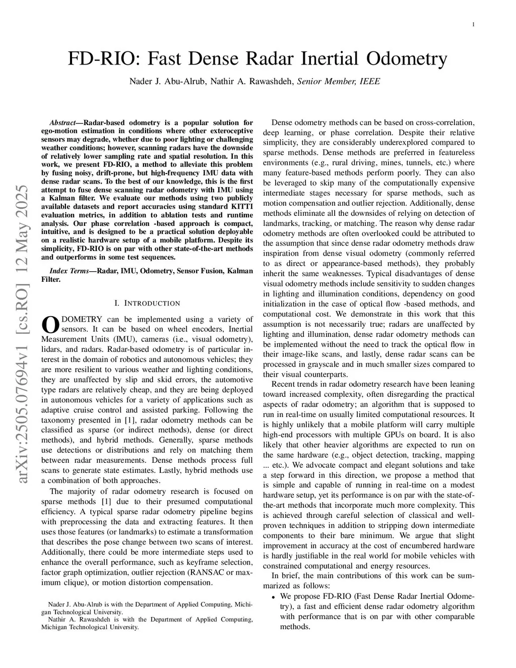 FD-RIO: Fast Dense Radar Inertial Odometry
