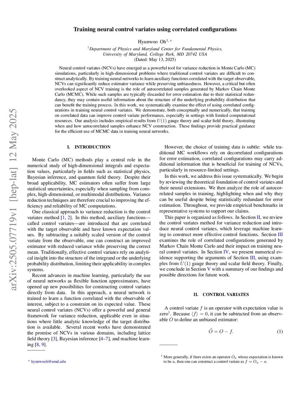 Neural control variates (NCVs) have emerged as a powerful tool for variance reduction in Monte Carlo (MC) simulations, particularly in high-dimensional problems where traditional control variates are difficult to construct analytically. By training neural networks to learn auxiliary functions correlated with the target observable, NCVs can significantly reduce estimator variance while preserving unbiasedness. However, a critical but often overlooked aspect of NCV training is the role of autocorrelated samples generated by Markov Chain Monte Carlo (MCMC). While such samples are typically discarded for error estimation due to their statistical redundancy, they may contain useful information about the structure of the underlying probability distribution that can benefit the training process. In this work, we systematically examine the effect of using correlated configurations in training neural control variates. We demonstrate, both conceptually and numerically, that training on correlated data can improve control variate performance, especially in settings with limited computational resources. Our analysis includes empirical results from gauge theory and scalar field theory, illustrating when and how autocorrelated samples enhance NCV construction. These findings provide practical guidance for the efficient use of MCMC data in training neural networks.