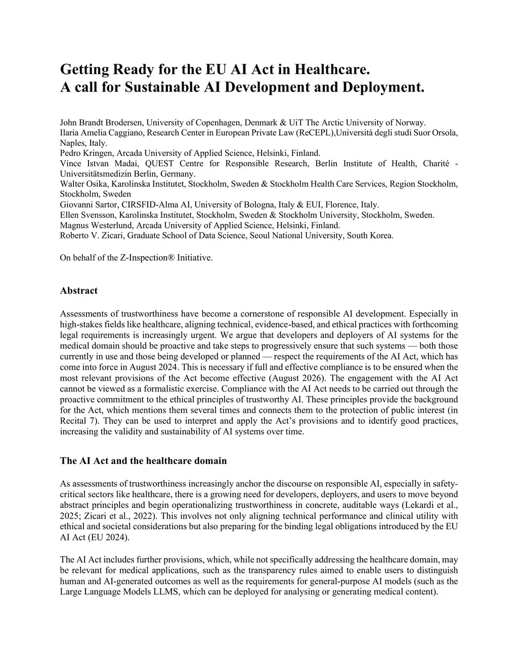 Getting Ready for the EU AI Act in Healthcare. A call for Sustainable AI Development and Deployment