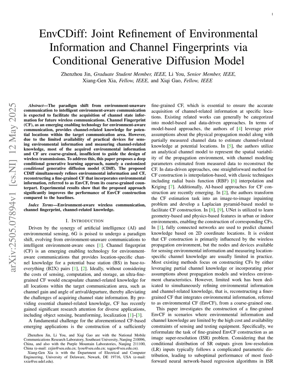 The paradigm shift from environment-unaware communication to intelligent environment-aware communication is expected to facilitate the acquisition of channel state information for future wireless communications. Channel Fingerprint (CF), as an emerging enabling technology for environment-aware communication, provides channel-related knowledge for potential locations within the target communication area. However, due to the limited availability of practical devices for sensing environmental information and measuring channel-related knowledge, most of the acquired environmental information and CF are coarse-grained, insufficient to guide the design of wireless transmissions. To address this, this paper proposes a deep conditional generative learning approach, namely a customized conditional generative diffusion model (CDiff). The proposed CDiff simultaneously refines environmental information and CF, reconstructing a fine-grained CF that incorporates environmental information, referred to as EnvCF, from its coarse-grained counterpart. Experimental results show that the proposed approach significantly improves the performance of EnvCF construction compared to the baselines.