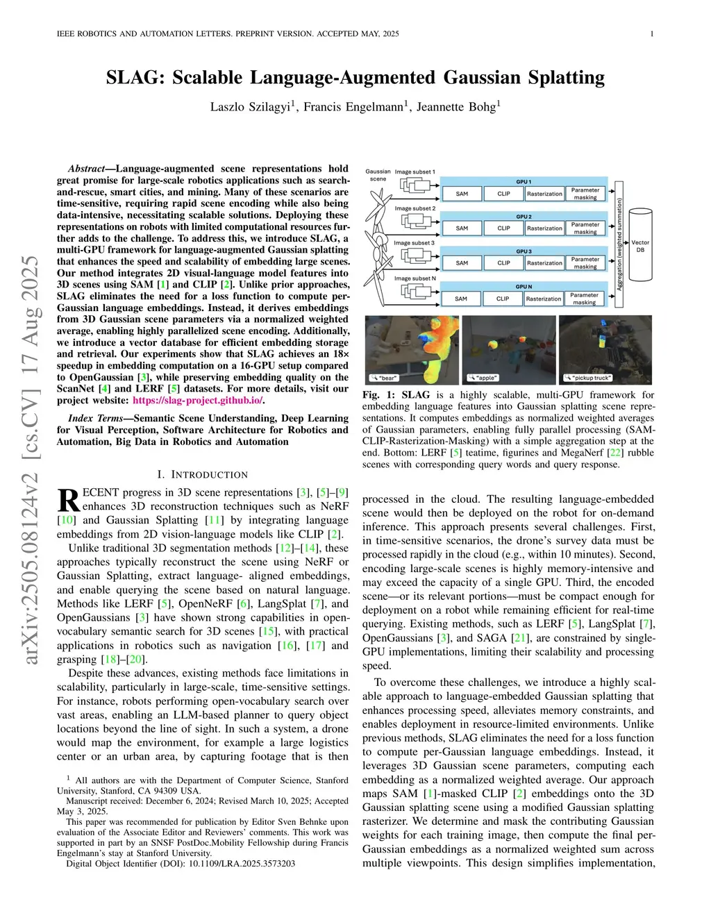 SLAG: Scalable Language-Augmented Gaussian Splatting