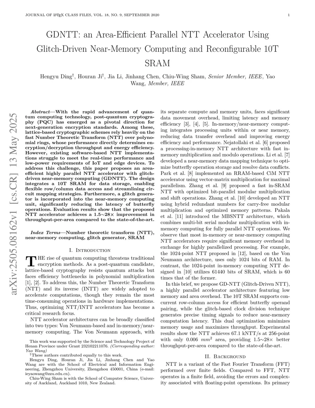 GDNTT: an Area-Efficient Parallel NTT Accelerator Using Glitch-Driven Near-Memory Computing and Reconfigurable 10T SRAM