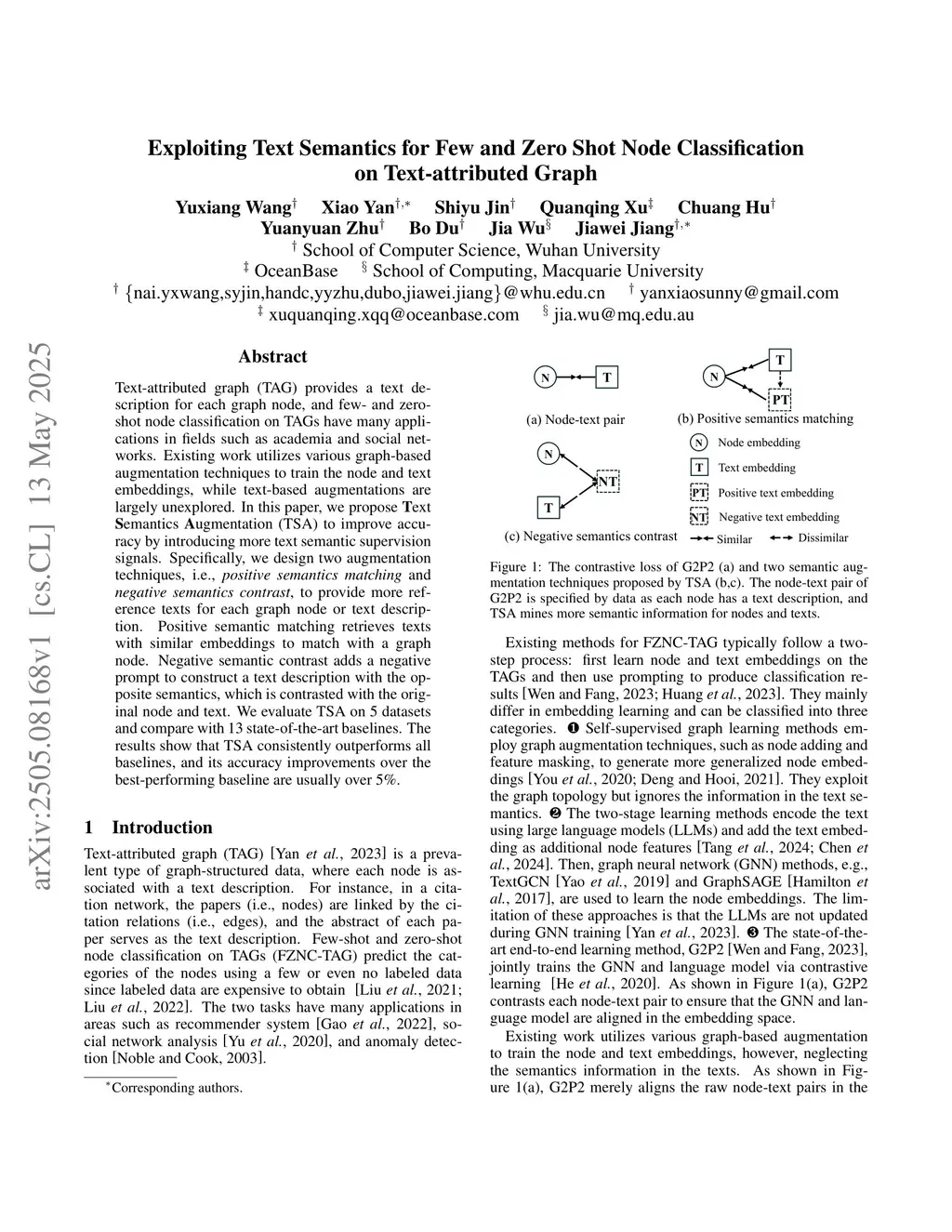 Exploiting Text Semantics for Few and Zero Shot Node Classification on Text-attributed Graph