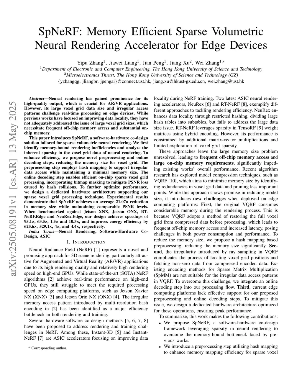 SpNeRF: Memory Efficient Sparse Volumetric Neural Rendering Accelerator for Edge Devices