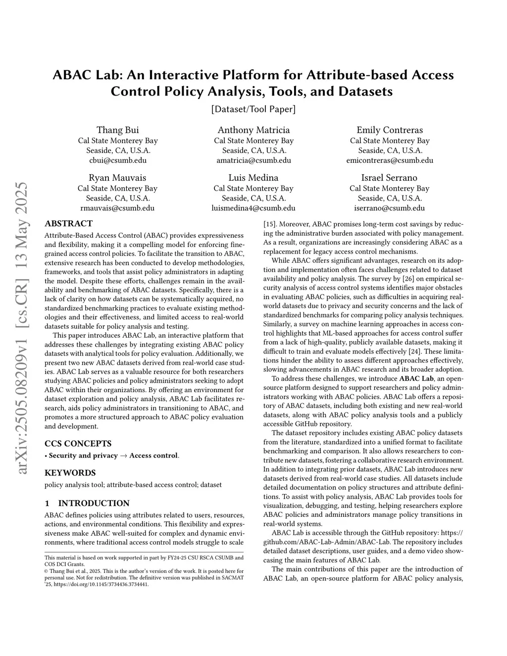 ABAC Lab: An Interactive Platform for Attribute-based Access Control Policy Analysis, Tools, and Datasets