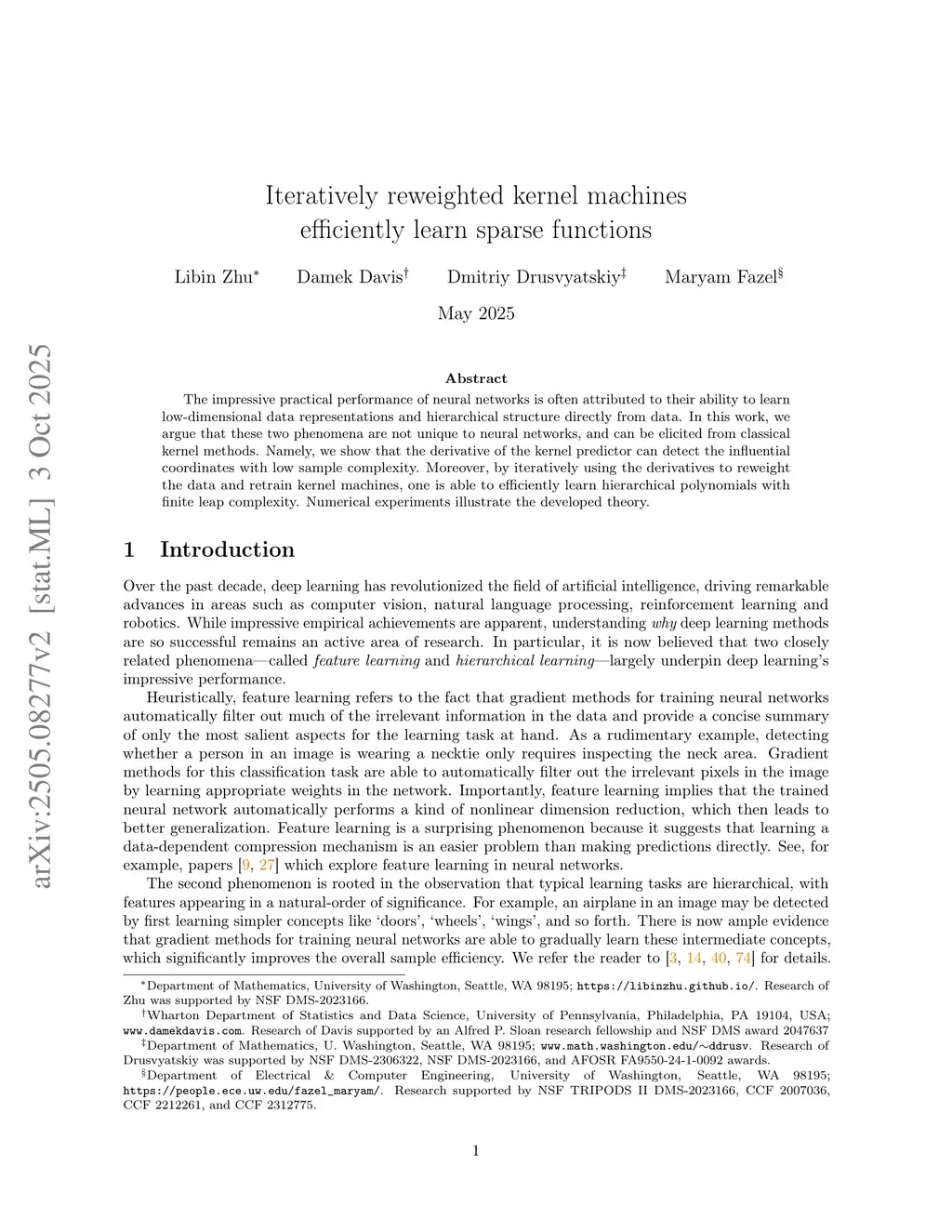 Iteratively reweighted kernel machines efficiently learn sparse functions