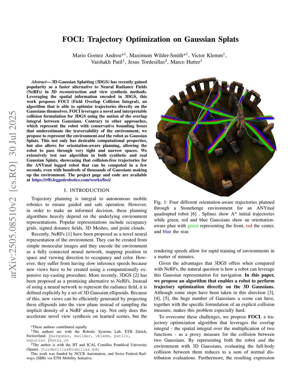 FOCI: Trajectory Optimization on Gaussian Splats