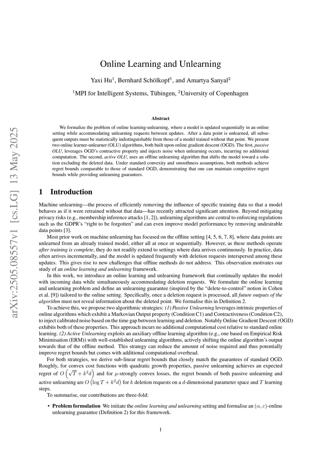 Online Learning and Unlearning
