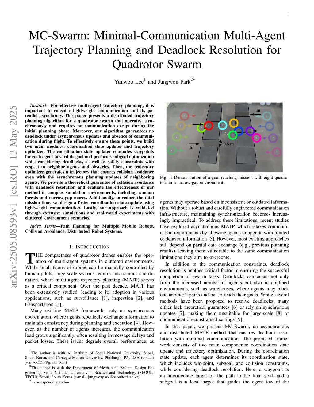 MC-Swarm: Minimal-Communication Multi-Agent Trajectory Planning and Deadlock Resolution for Quadrotor Swarm