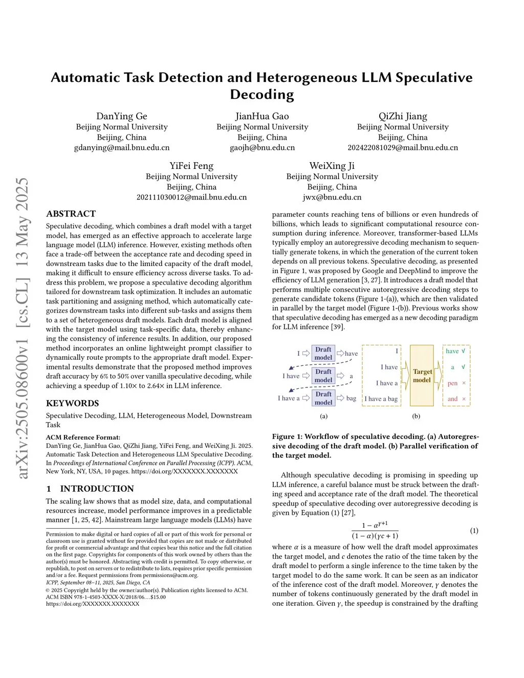 Automatic Task Detection and Heterogeneous LLM Speculative Decoding