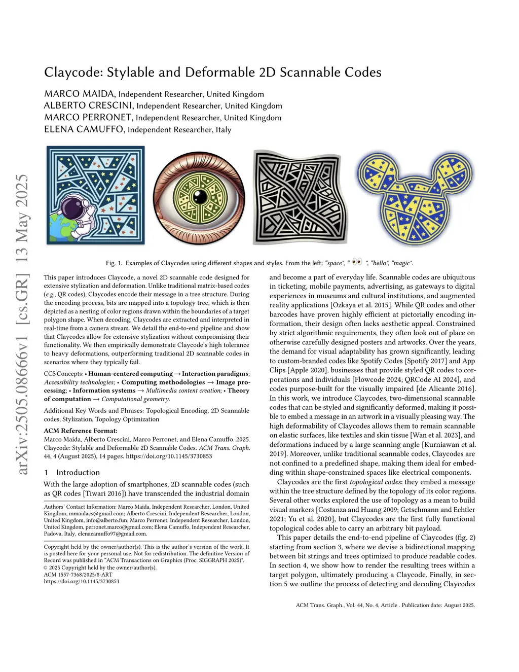 Claycode: Stylable and Deformable 2D Scannable Codes