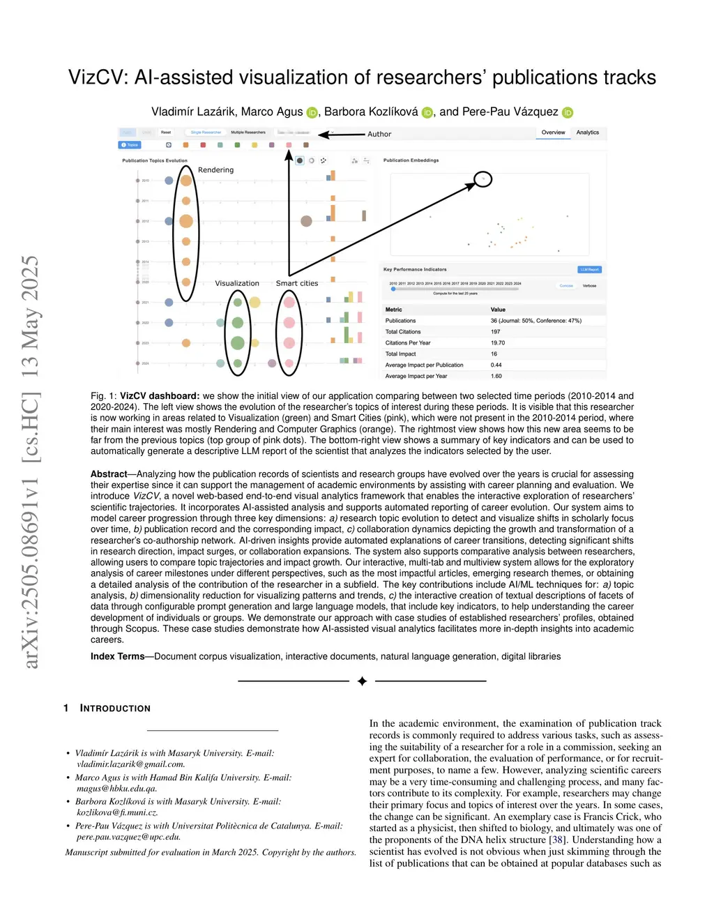 VizCV: AI-assisted visualization of researchers' publications tracks