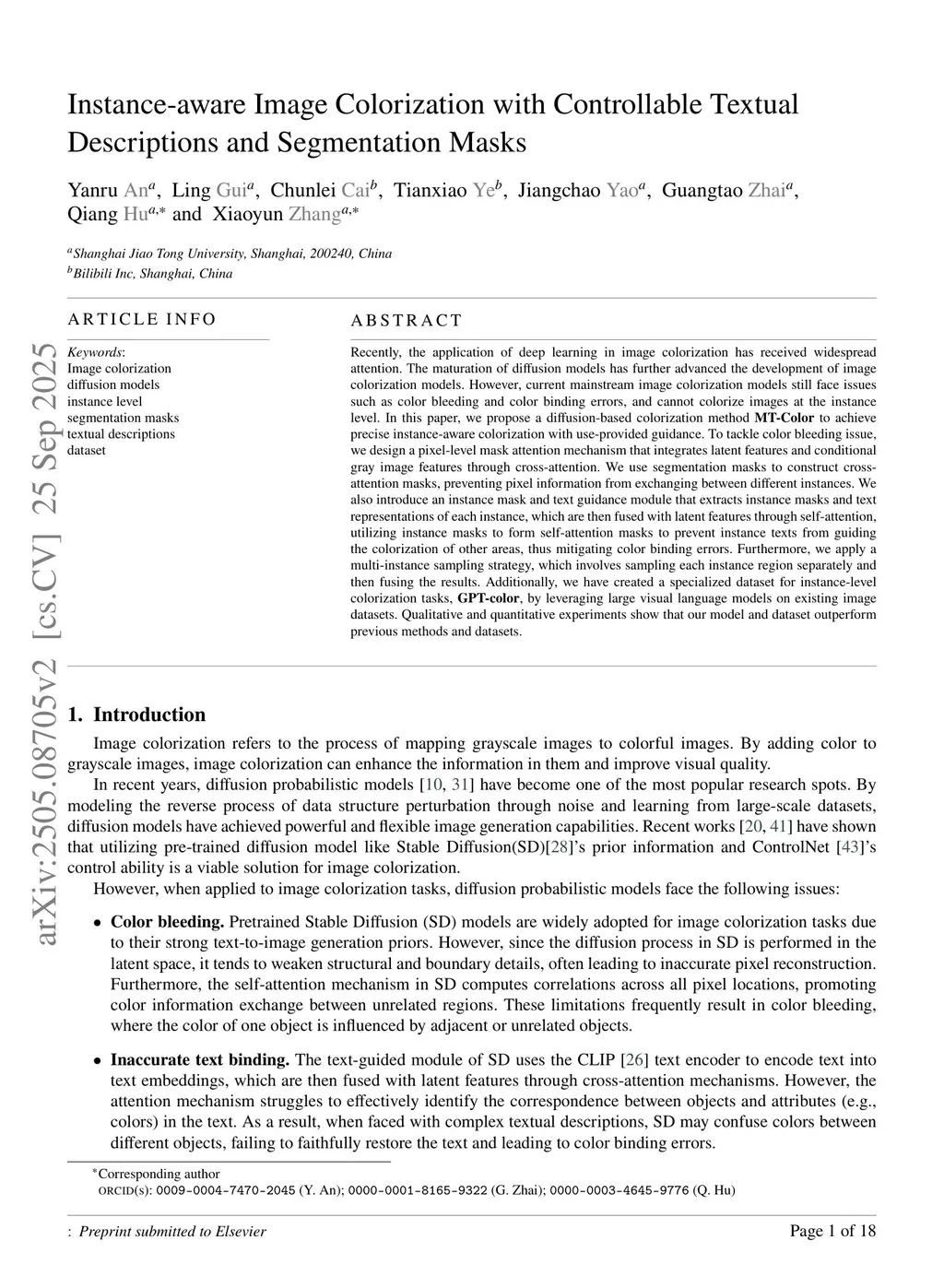 Recently, the application of deep learning in image colorization has received widespread attention. The maturation of diffusion models has further advanced the development of image colorization models. However, current mainstream image colorization models still face issues such as color bleeding and color binding errors, and cannot colorize images at the instance level. In this paper, we propose a diffusion-based colorization method MT-Color to achieve precise instance-aware colorization with use-provided guidance. To tackle color bleeding issue, we design a pixel-level mask attention mechanism that integrates latent features and conditional gray image features through cross-attention. We use segmentation masks to construct cross-attention masks, preventing pixel information from exchanging between different instances. We also introduce an instance mask and text guidance module that extracts instance masks and text representations of each instance, which are then fused with latent features through self-attention, utilizing instance masks to form self-attention masks to prevent instance texts from guiding the colorization of other areas, thus mitigating color binding errors. Furthermore, we apply a multi-instance sampling strategy, which involves sampling each instance region separately and then fusing the results. Additionally, we have created a specialized dataset for instance-level colorization tasks, GPT-color, by leveraging large visual language models on existing image datasets. Qualitative and quantitative experiments show that our model and dataset outperform previous methods and datasets.
